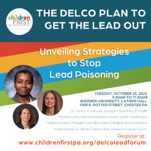 Join Children First on Tuesday, October 25th at 9:30 am as we work with the Acting PA Secretary of Health and Delaware County officials as we unveil strategies to stop childhood lead poisoning. RSVP at: www.childrenfirstpa.org/delcoleadforum