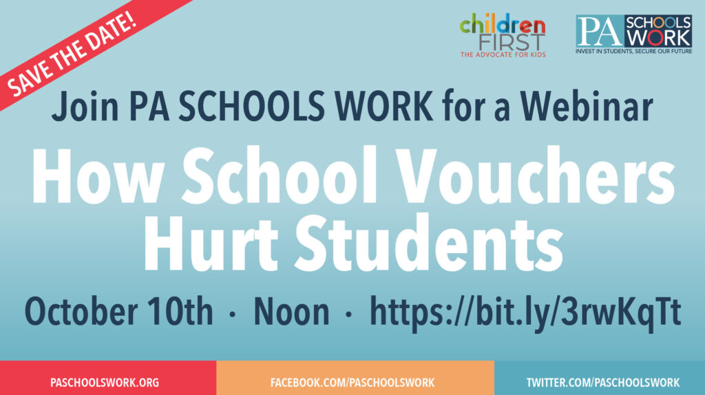 Join Children First and our partners on the PA Schools Work campaign for a discussion on vouchers, who benefits from vouchers, and the overwhelmingly negative impact that these programs have on student achievement.