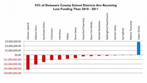 Expanding access to early childhood education costs money and thanks to politically motivated school funding decisions in Harrisburg, 93% of Delaware County school districts are currently funded at a level below where they were just three years ago. Only Upper Darby has seen an increase over 2010 levels, but that doesn’t mean it is adequately funded. Not by any means.