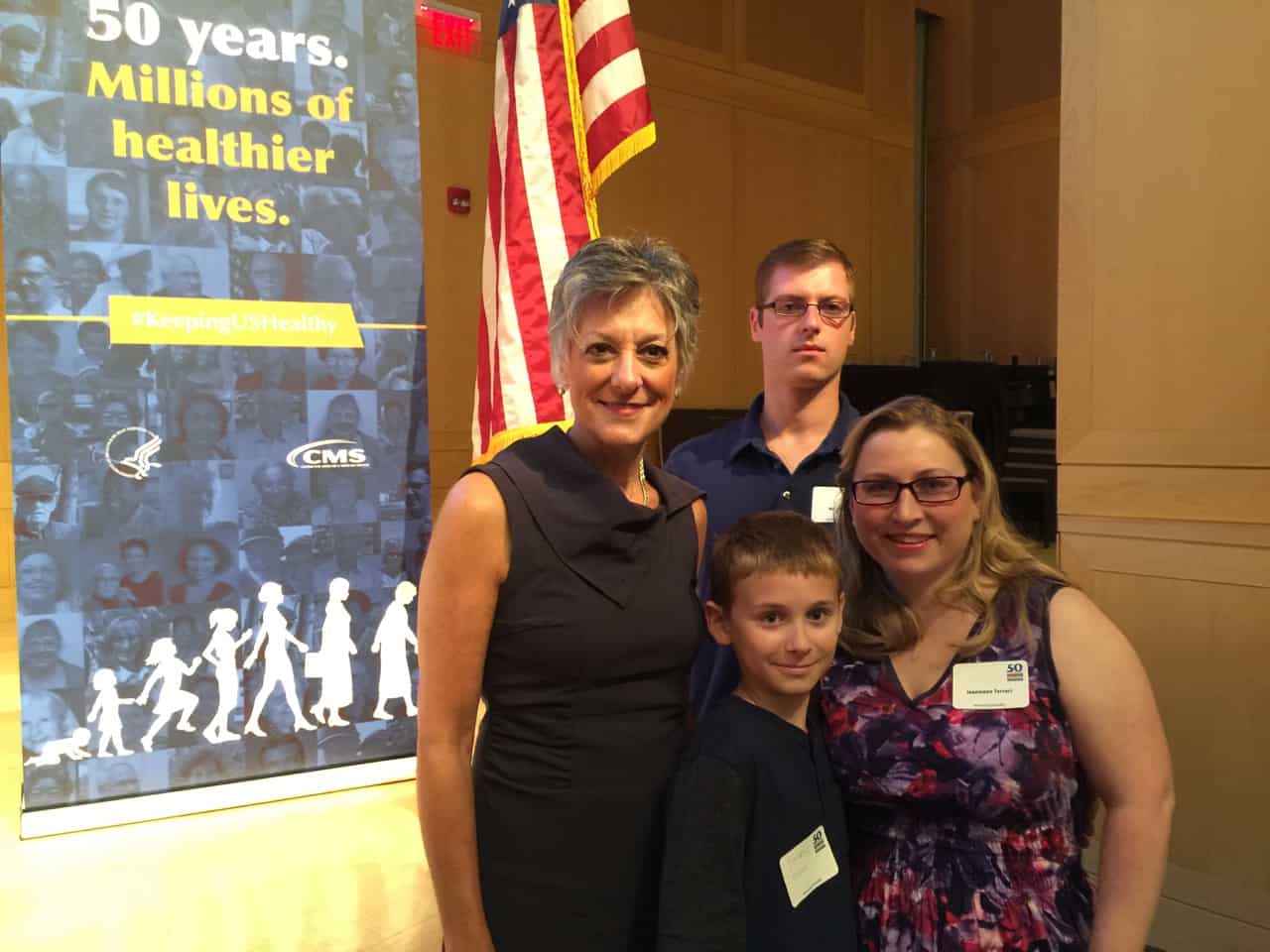 Jeanieann Ferrari (right), her husband and one of her four children pose with former U.S. Rep. Allyson Schwartz (left) at the 50th Anniversary of Medicare and Medicaid at the National Constitution Center.