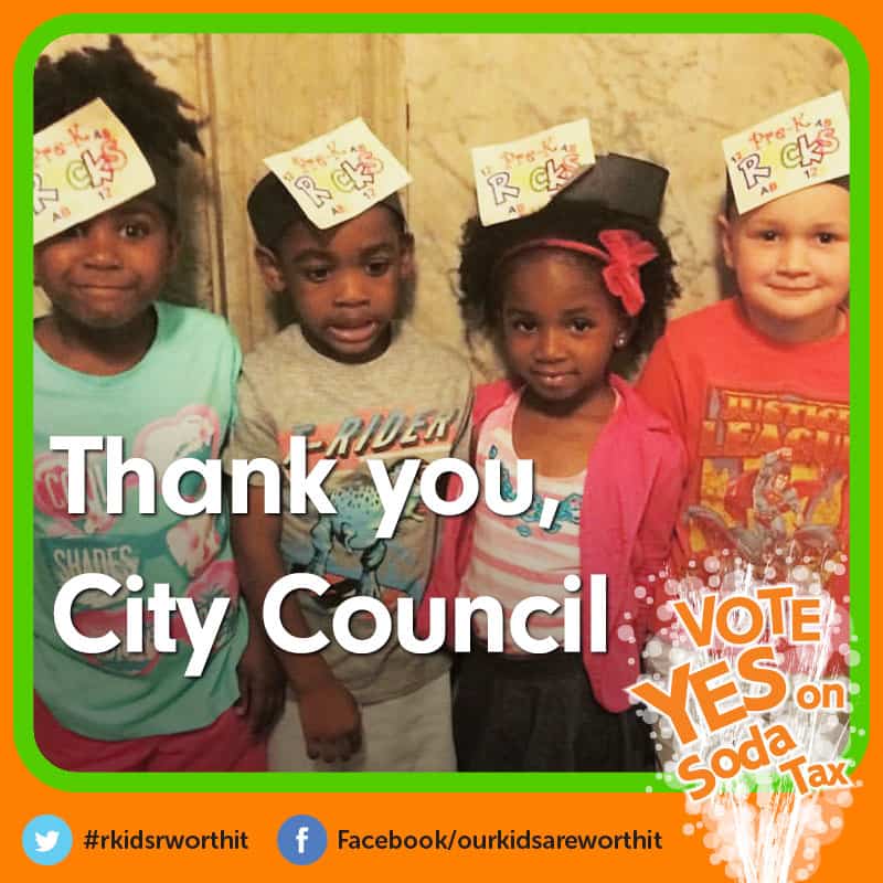 With the final soda tax vote on June 16, there’s still vital work to do. Call Philly Council President Darrell Clarke and his council colleagues and thank them for their great leadership on pre-k and safer spaces for kids. Or retweet the many messages of thanks at @rkidsrworthit!