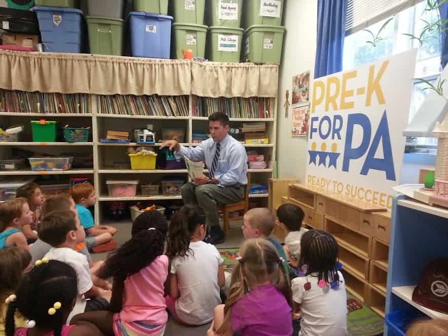 Bucks County Commissioner Rob Loughery reads to children at Emilie Christian Day School, in Levittown, Pa. on behalf of the Pre-K for PA Campaign
