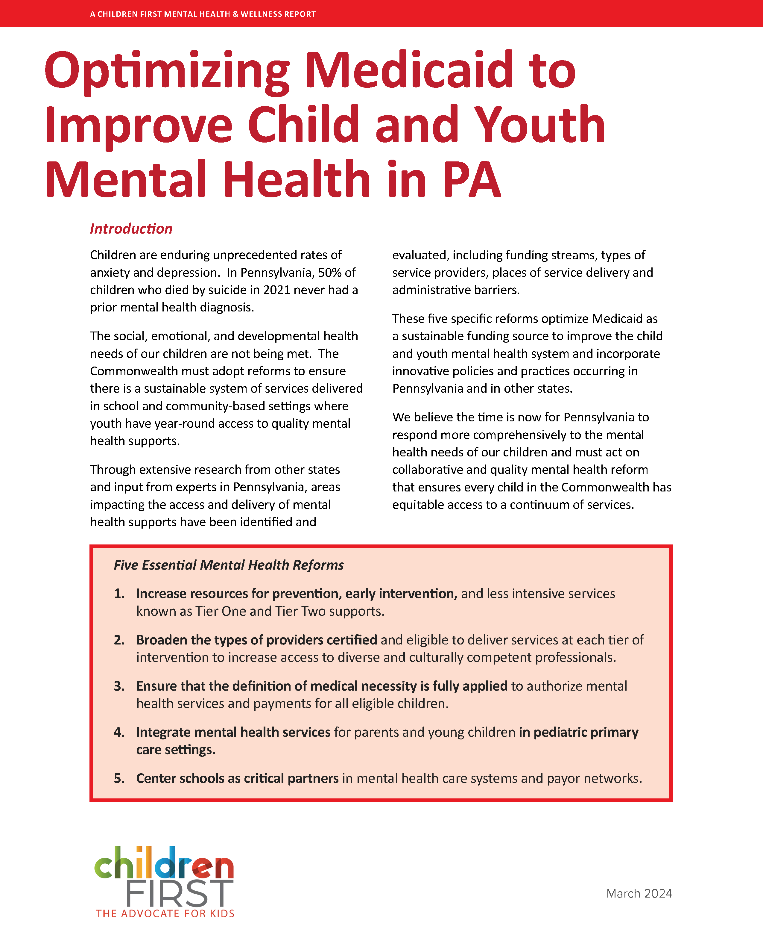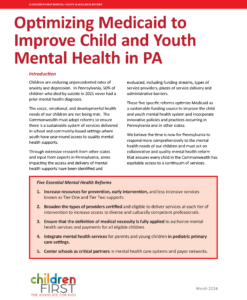 REPORT: Optimizing Medicaid to Improve Child and Youth Mental Health in PA – March 2024