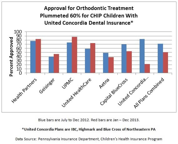 PCCY analysis shows that approval for orthodontic treatment for children enrolled in CHIP with dental insurance from United Concordia dropped 60%