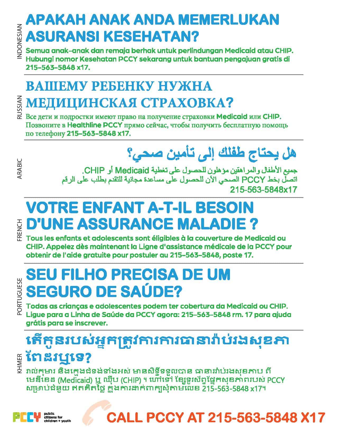 PCCY’s Helpline is available to help you and your children get access to health insurance.  For help in any language, call: 215-563-5848 x17.