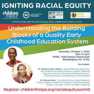 Understanding the Building Blocks of a Quality Early Childhood Education System. ECE providers are invited to join us on Saturday, October 1, 2022 from 9am to 4pm at PHMC’s offices, 1500 Market Street, East (the Clothes Pin Building). This summit is eligible for PQAS hours.
